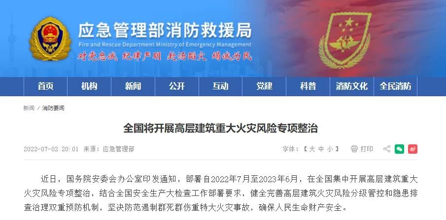 近日,国务院安委会办公室印发通知,部署自2022年7月至2023年6月,在全国集中开展高层建筑重大火灾风险专项整治,结合全国安全生产大检...