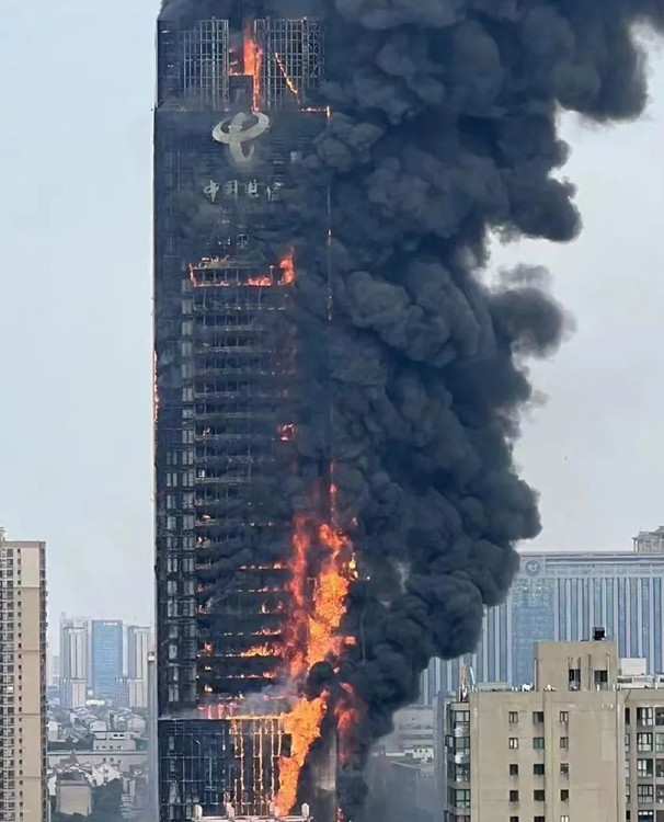 9月16日下午 湖南长沙市区内的 中国电信大楼发生火灾 现场浓烟滚滚 数十层楼体燃烧剧烈 据了解 现场为电信大厦外墙起火 ...