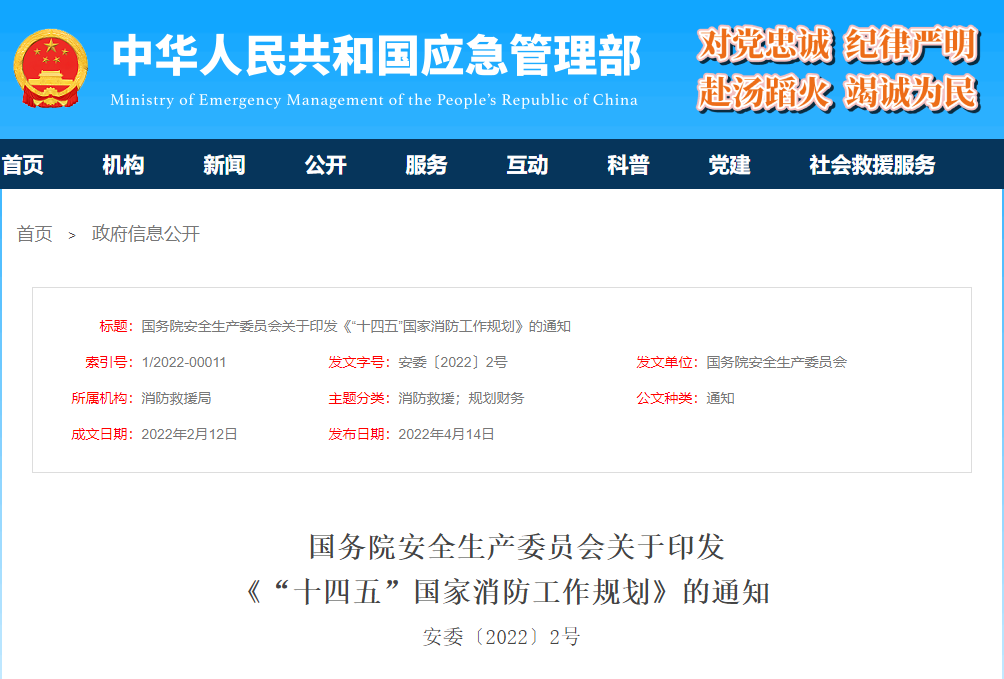 国务院安全生产委员会关于印发《“十四五”国家消防工作规划》的通知安委〔2022〕2号各省、自治区、直辖市人民政府,新疆生产建设兵团,国务院安...