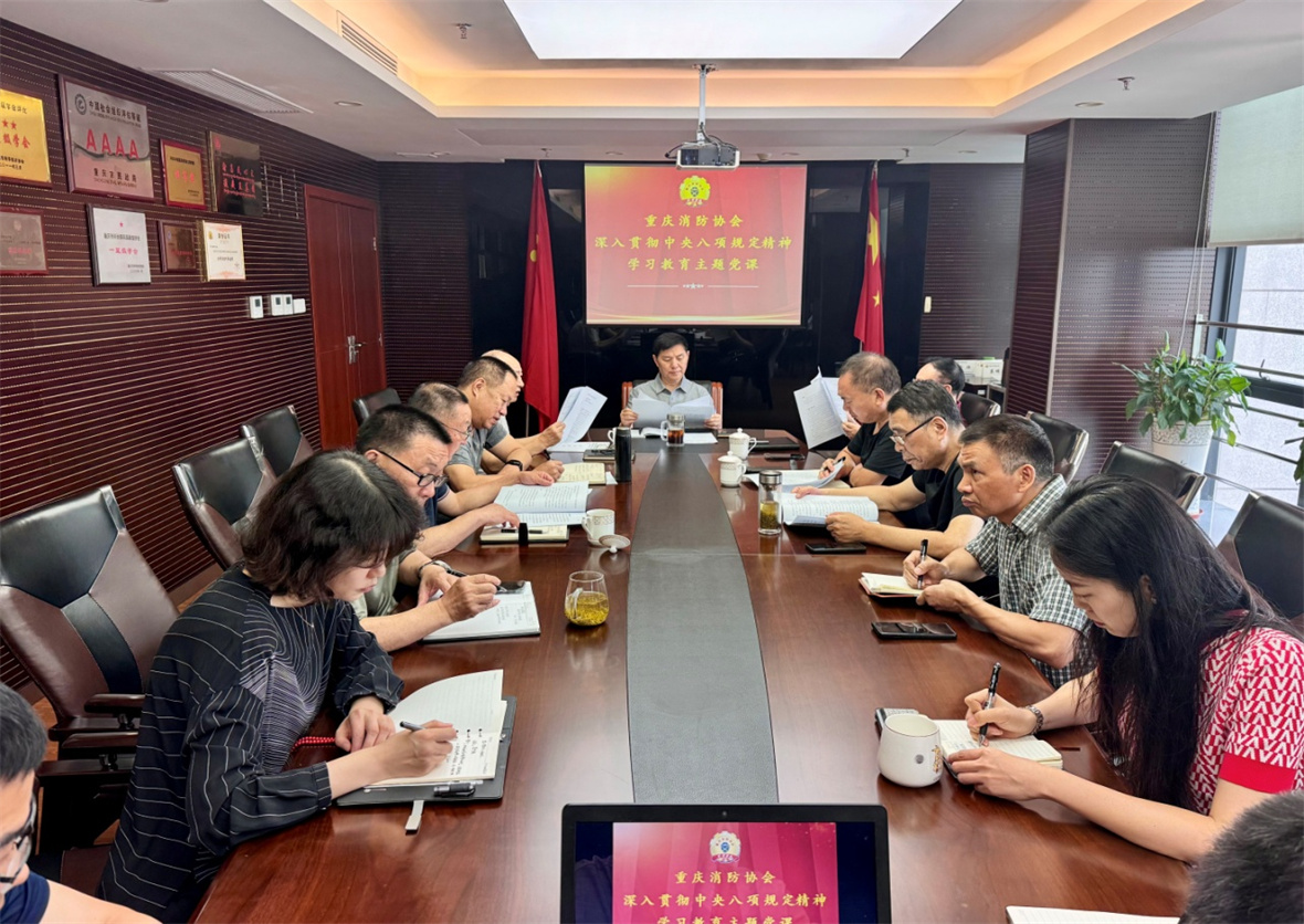 为深入贯彻中央八项规定精神学习教育,进一步加强协会作风建设,5月21日,重庆消防协会党支部以“八项规定 改变中国”为题开展深入贯彻中央八项规定精神学习教育主题党课,协会全体党员参会,全体员工列席。
