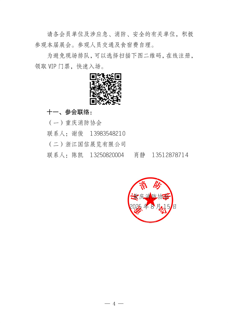 附件:关于组织参观“2025第四届中国(杭州)国际消防安全及应急救援展览会”的通知 盖章版.pdf 点击打开链接