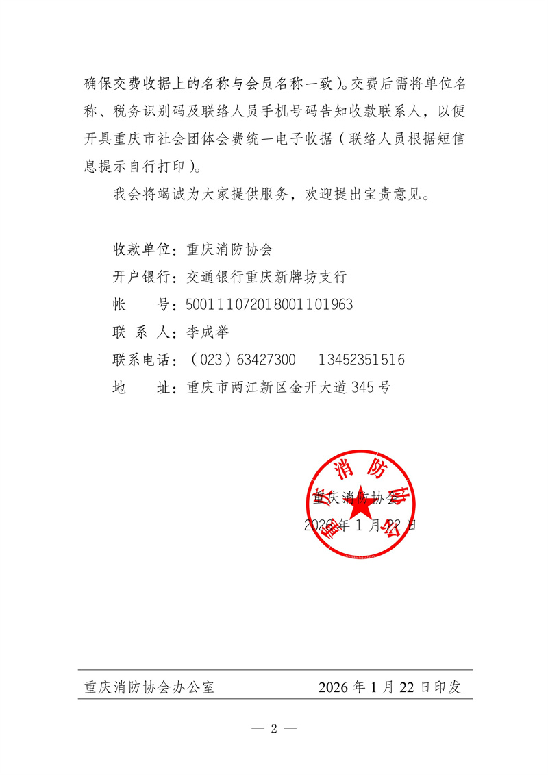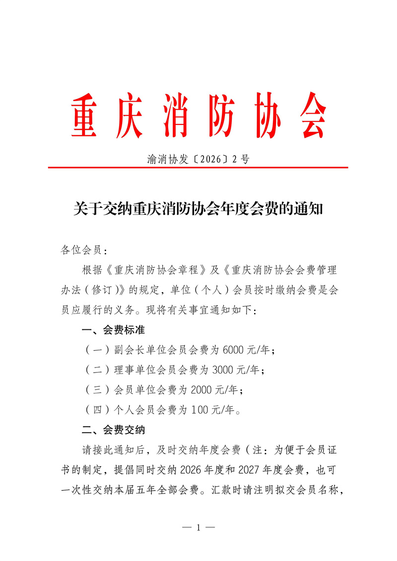 关于缴纳重庆消防协会年度会费的通知 (PDF盖章版) 点击打开链接