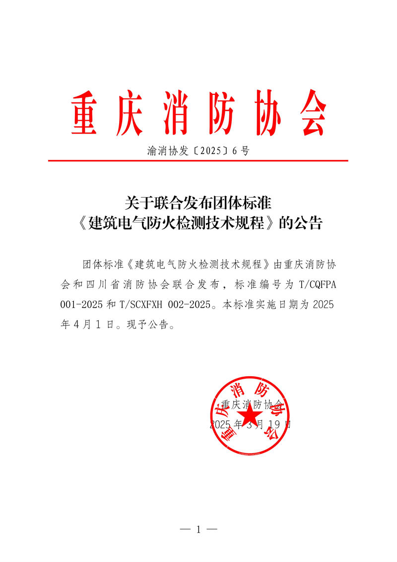 关于联合发布团体标准《建筑电气防火检测技术规程》的公告
