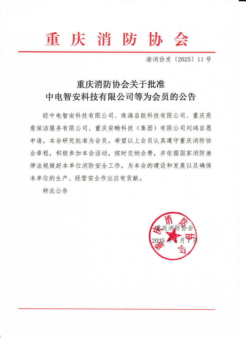 重庆消防协会关于批准中电智安科技有限公司等为会员的公告