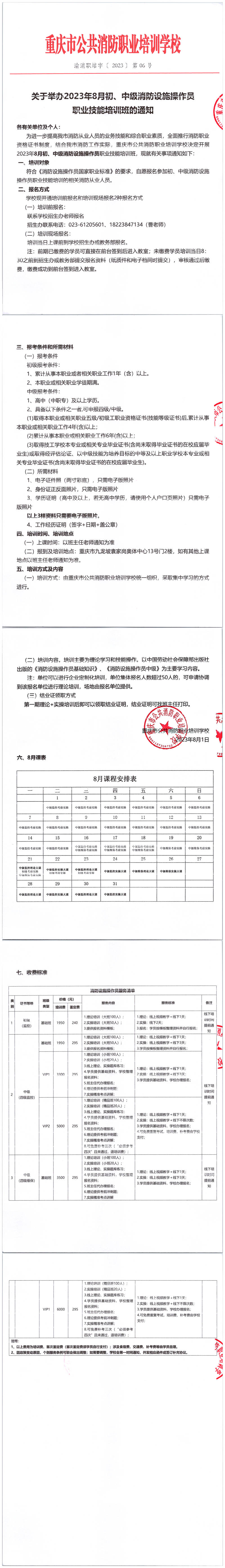 关于举办2023年8月份初、中级消防设施操作员 职业技能培训班的通知