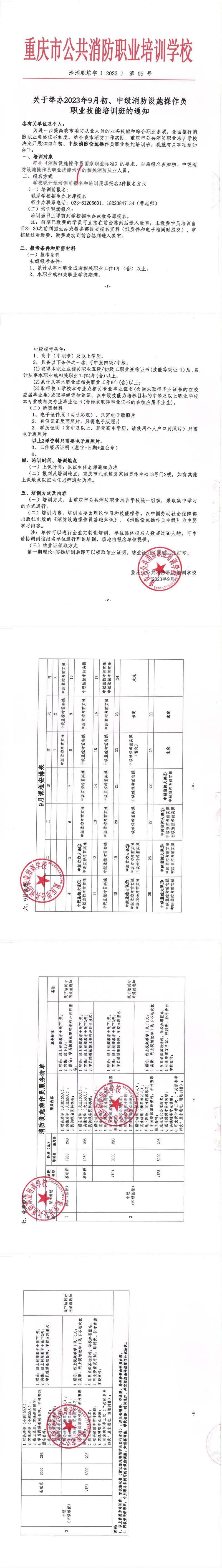 关于举办2023年9月份初、中级消防设施操作员 职业技能培训班的通知