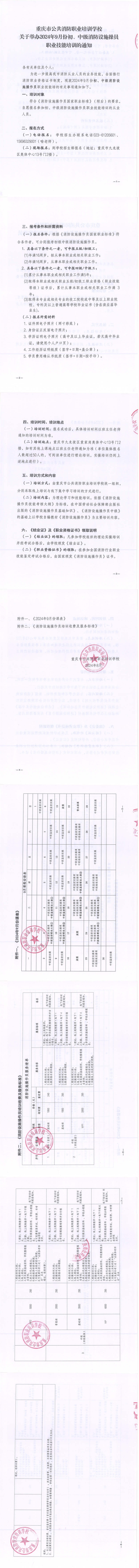 关于举办2024年9月份初、中级消防设施操作员职业技能培训的通知