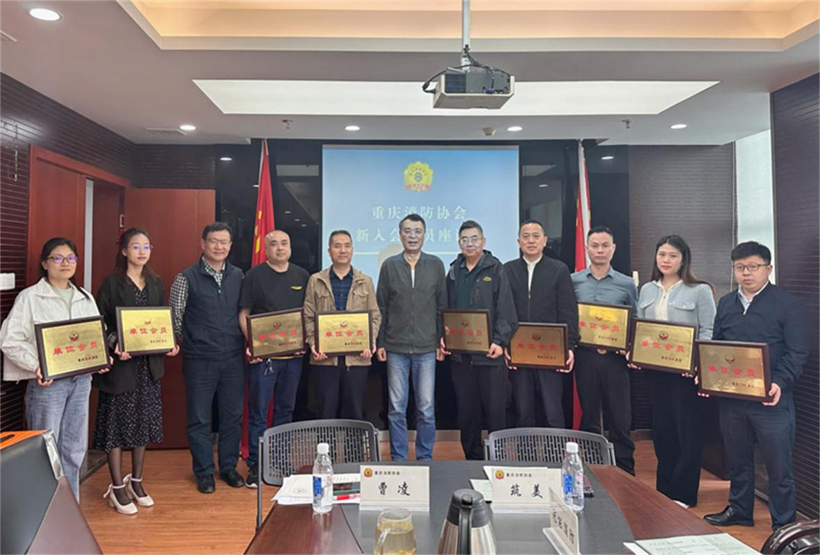 最后秘书长吴华为会员单位新大正物业集团股份有限公司、重庆爱友消防工程有限公司、重庆筑美信息科技有限公司、重庆丰实清洗服务有限公司、重庆冠能消防安全技术有限公司、重庆聚能消防安全技术有限公司、浙江华消科技有限公司、浙江宏倍斯智能科技股份有限公司、重庆渝勤安消防技术服务中心及重庆重康发动机销售服务公司曹凌授予证书和会员单位牌匾并合影留念。