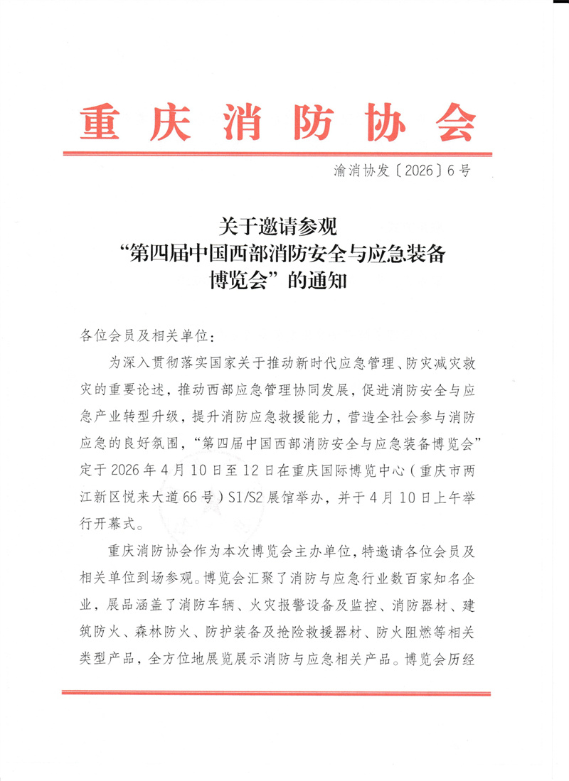 关于邀请参观“第四届中国西部消防安全与应急装备博览会”的通知