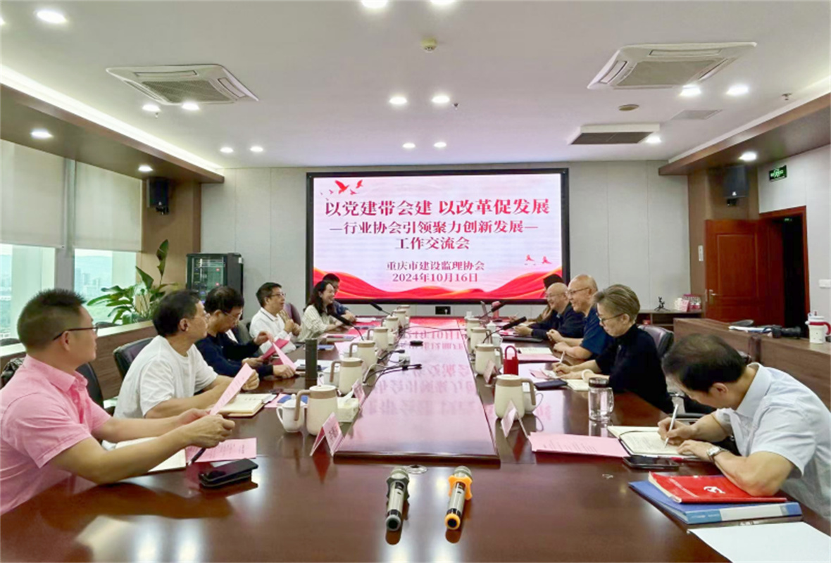 10月16日,“以党建带会建,以改革促发展”为主题的行业协会引领聚力创新发展工作交流会在重庆市建设监理协会召开。重庆消防协会党支部书记、副会长蹇可银,重庆市绿色建筑与建筑产业化协会会长曹勇、联合支部书记、秘书长陈琼,重庆市工程爆破协会联合支部副书记、秘书长赵峻,重庆市建设工程质量协会党支部书记、会长邹俊才、党支部副书记、秘书长向健,重庆市建设监理协会党支部副书记、秘书长胡明健、副秘书长史红、全咨分会秘书长陈洪兵、党建辅导员周惕出席会议。会议由重庆市建设监理协会秘书长胡明健主持。