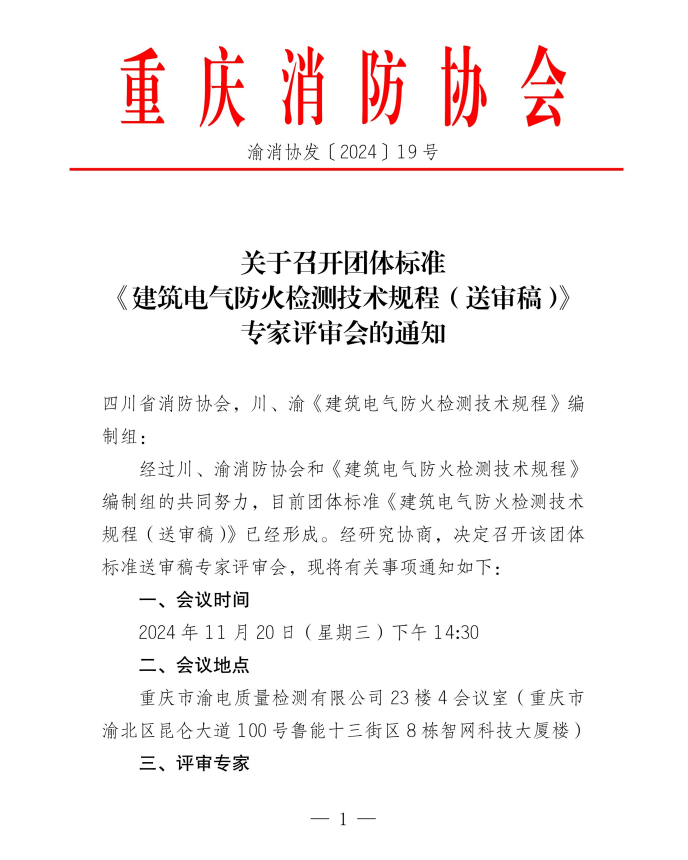 附件:关于召开团体标准 《建筑电气防火检测技术规程 (送审稿 )》 专家评审会的通知 (PDF盖章版)点击打开链接下载