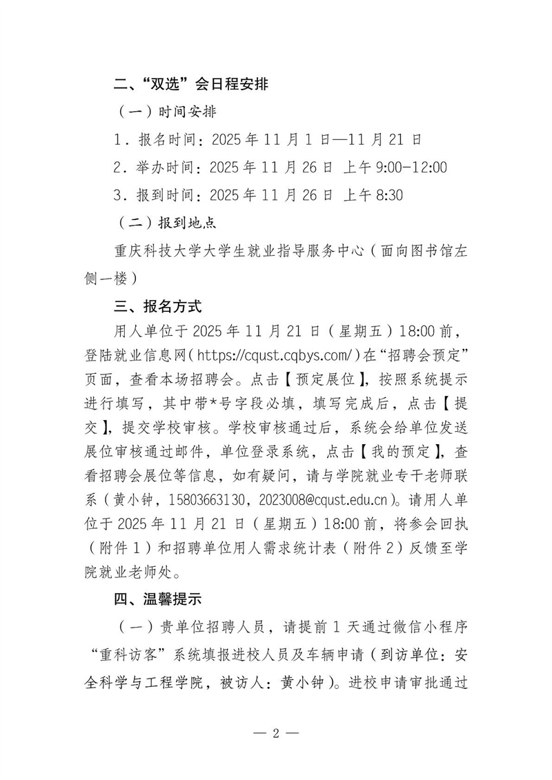 关于邀请参加重庆科技大学2026届毕业生秋季就业“双选”会的通知