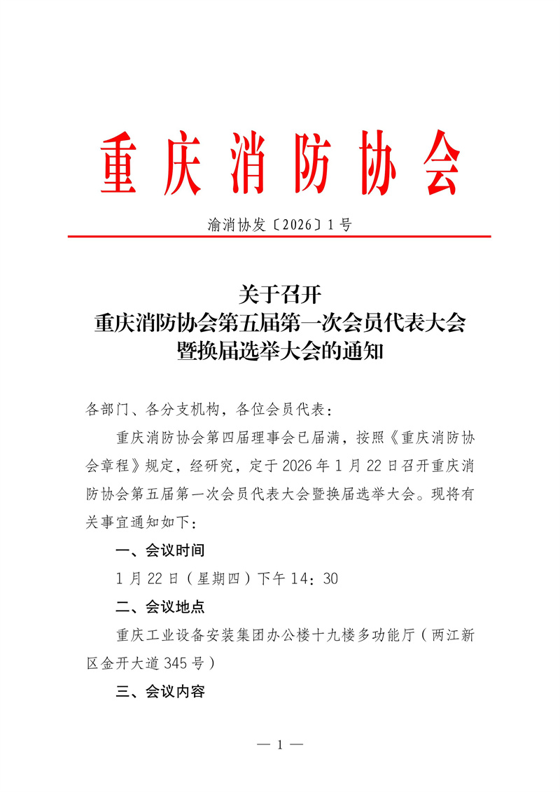 关于召开重庆消防协会第五届第一次会员代表大会暨换届选举大会的通知