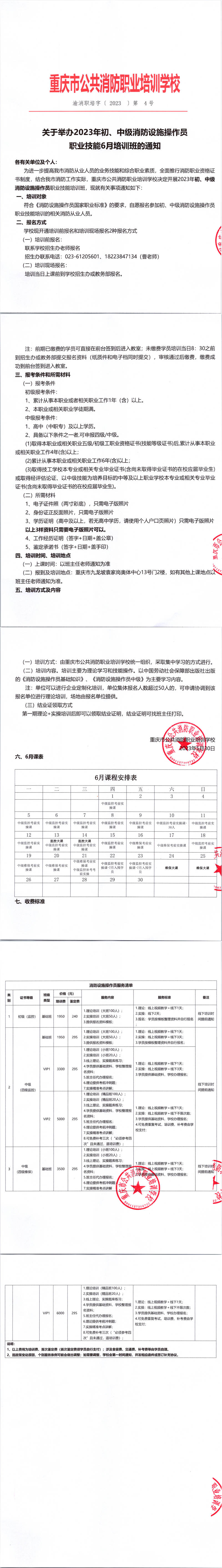 关于举办2023年6月份初、中级消防设施操作员 职业技能培训班的通知