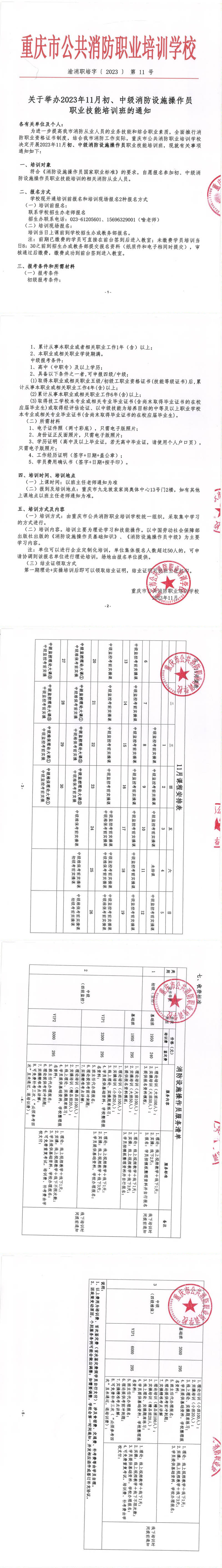 关于举办2023年11月份初、中级消防设施操作员 职业技能培训班的通知