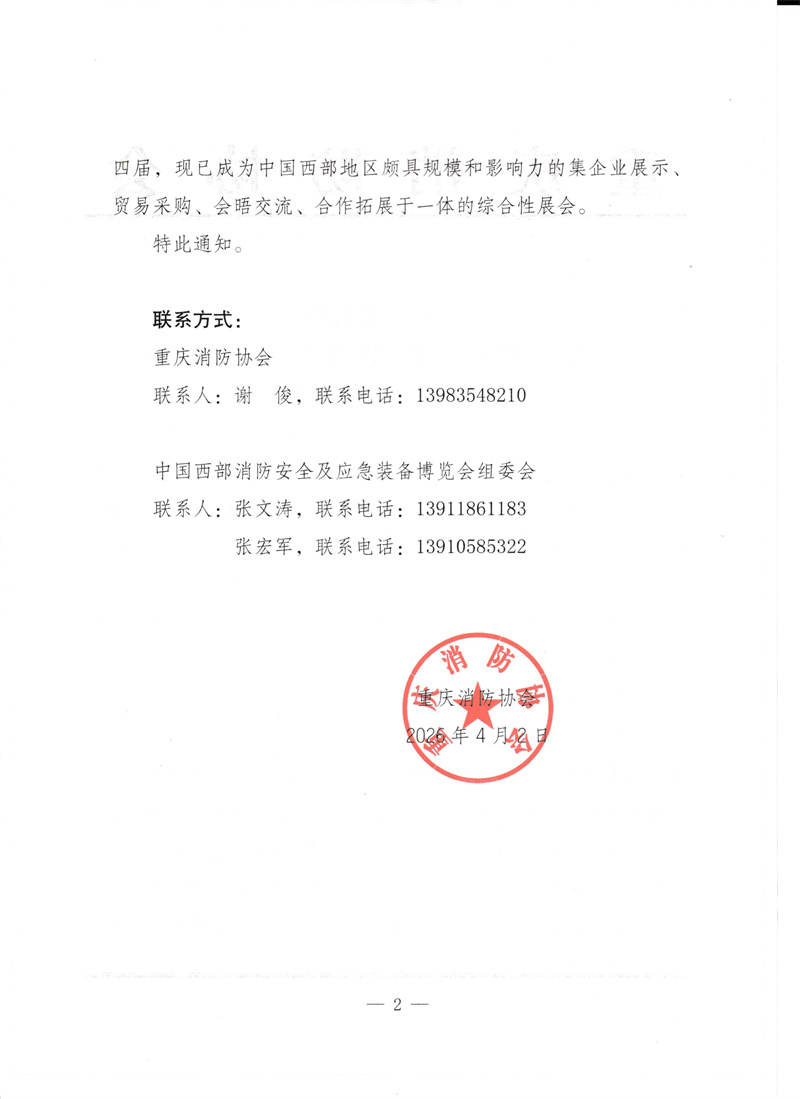 关于邀请参观“第四届中国西部消防安全与应急装备博览会”的通知