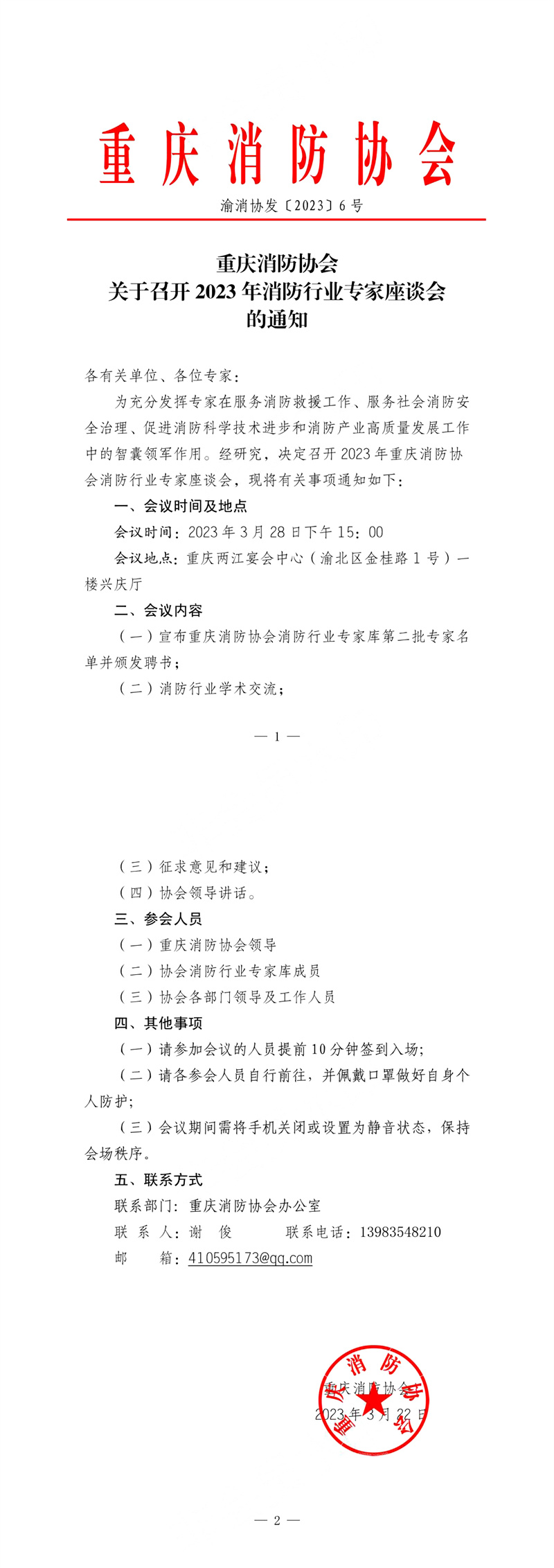 重庆消防协会关于召开2023年消防行业专家座谈会的通知
