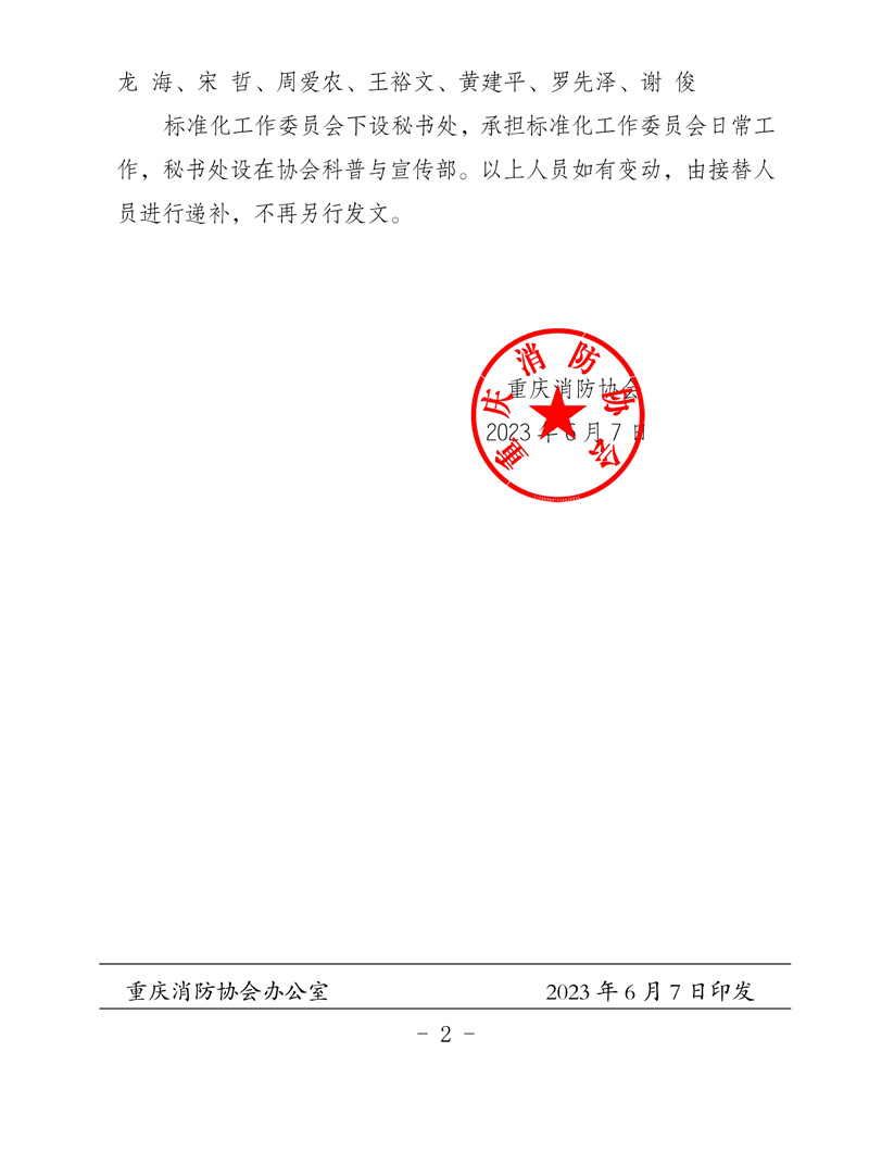重庆消防协会关于成立标准化工作委员会的通知